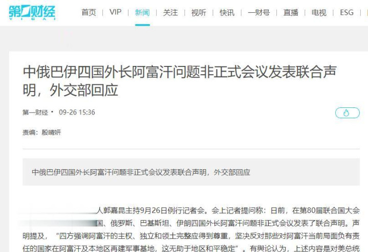 在安理会表决前后,中俄伊巴四国不仅在外交层面协同发声,更将支持举措落到实处。9 月 29 日,四国在莫斯科举行阿富汗问题外长级磋商,会后发布的联合声明明确三项具体行动:中国将重启喀布尔至坎大哈公路修复项目。